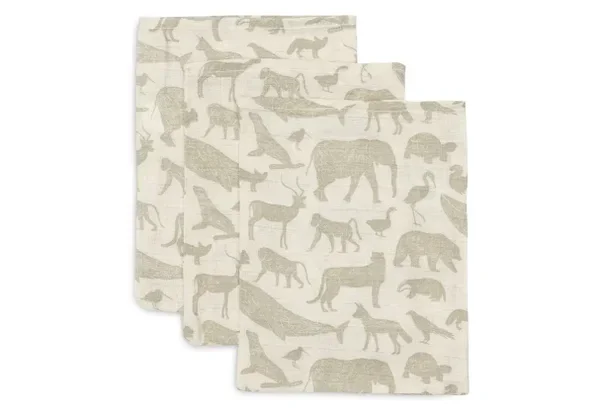 54. Jollein Hydrofiel Washandje 15x20cm Animals - Olive Green - 3 Stuks