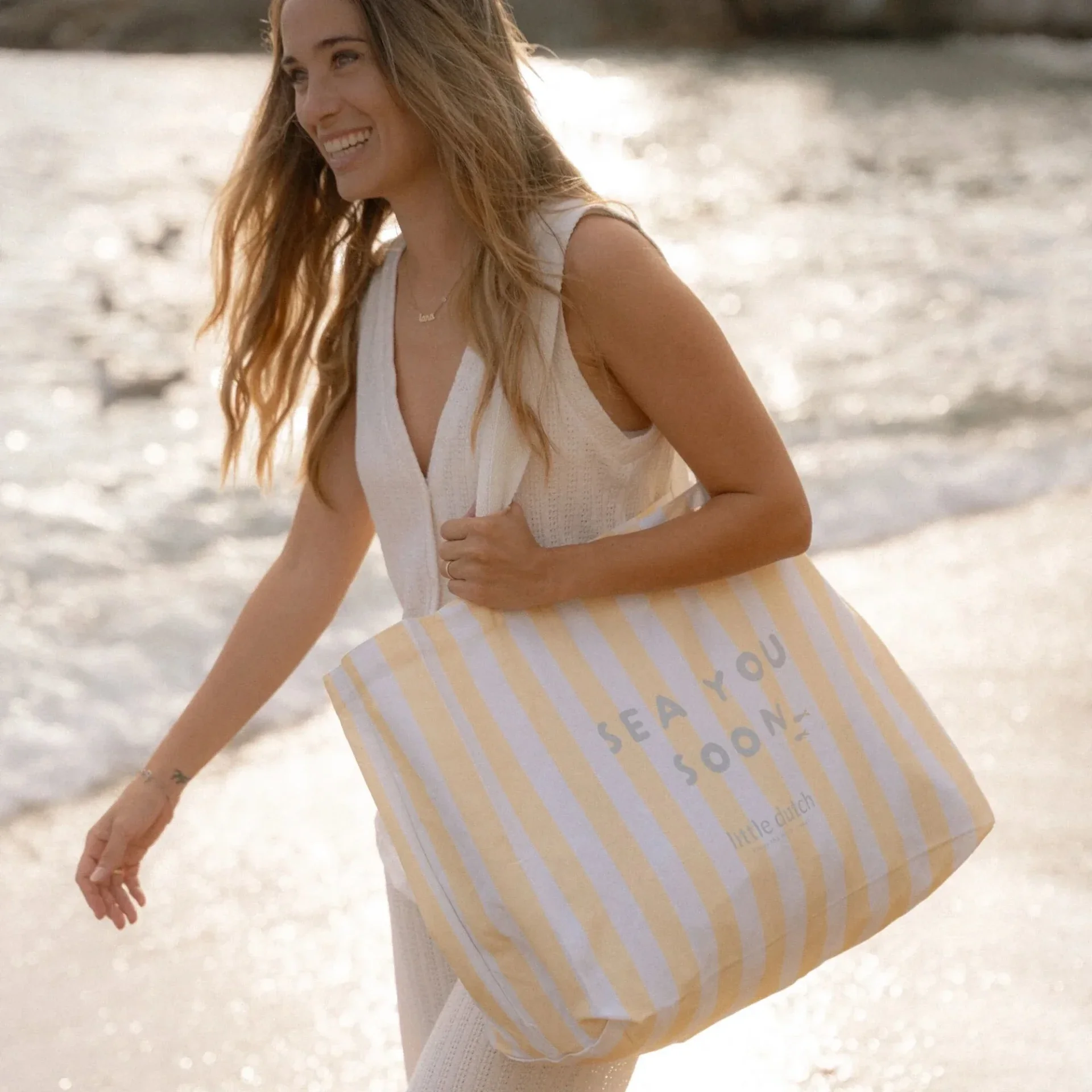Little dutch Strandtas - Geel - Maat one size - Stripe