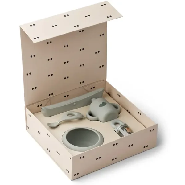 Met de Liewood Baby Starter Set - Dove Blue geef je je baby een liefdevolle start aan tafel. Alles wat je nodig hebt om samen veilig en ontspannen te leren eten.