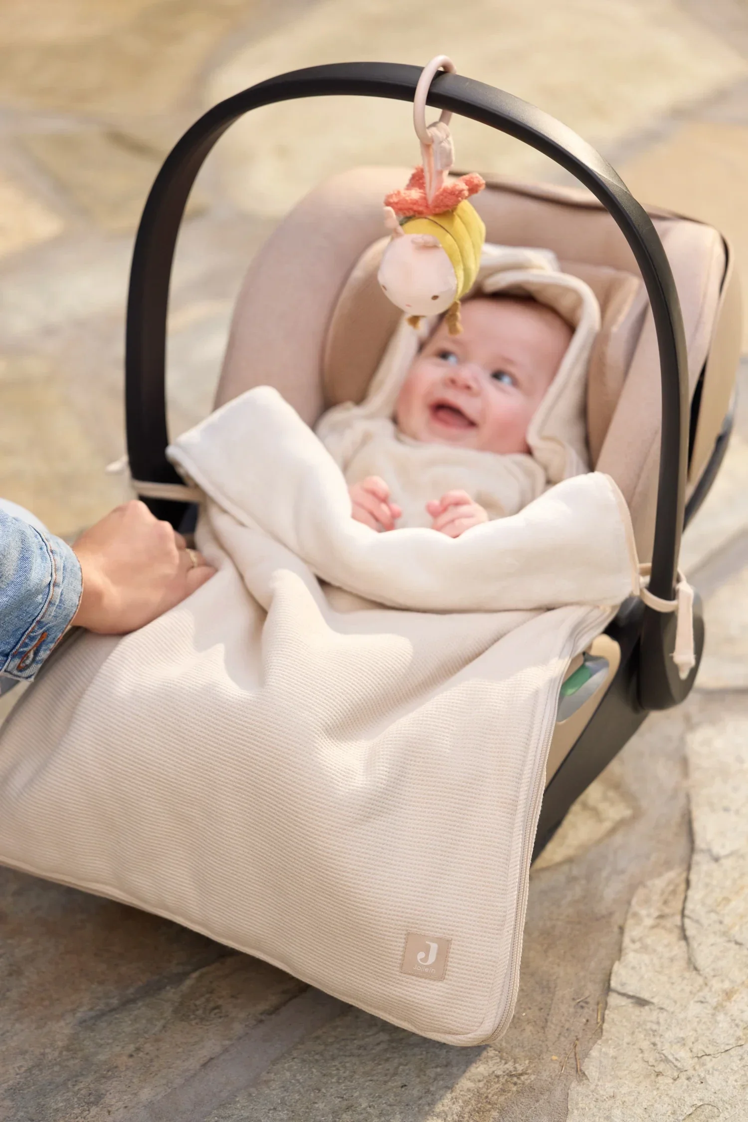 Hoe lief is deze wagenhanger uit het Pretty Picnic thema! Het schattige bijtje heeft speelse details en een geborduurd gezichtje. Binnenin zit knisperpapier en ook een klein belletje verstopt, waardoor het bijtje nóg leuker wordt om mee te spelen. Dankzij de handige ring bevestig je hem gemakkelijk aan de kinderwagen, zodat je kleintje onderweg altijd iets leuks te ontdekken heeft.