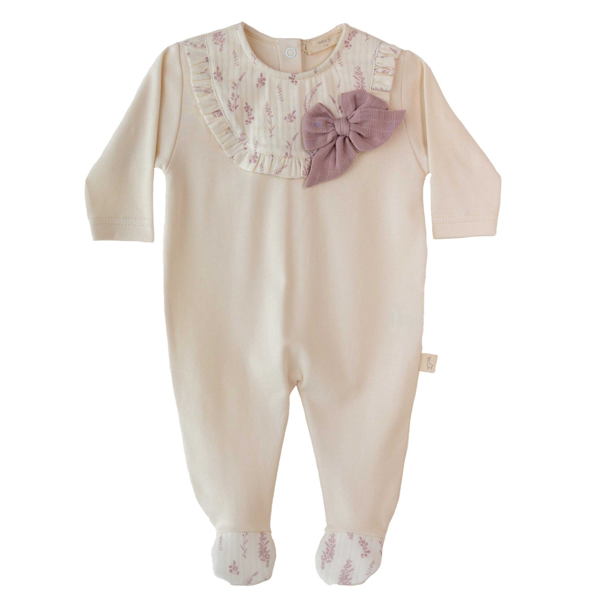 Baby Gi beige babygrow with bow lily
